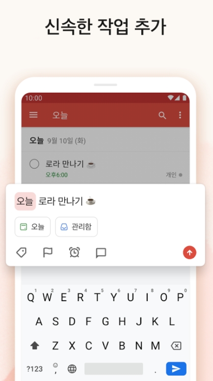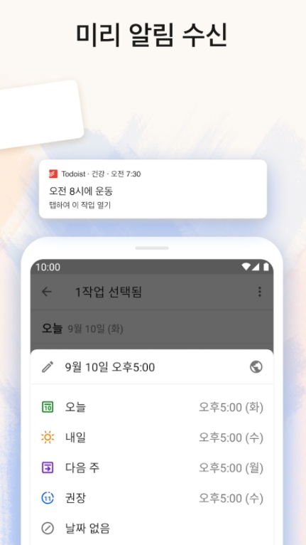• “내일 오후 4시"와 같은 세부사항을 입력하면 Todoist가 인지합니다.