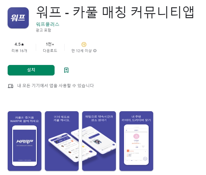 5. 회사원에게 유용한 어플 - 워프(카풀매칭)